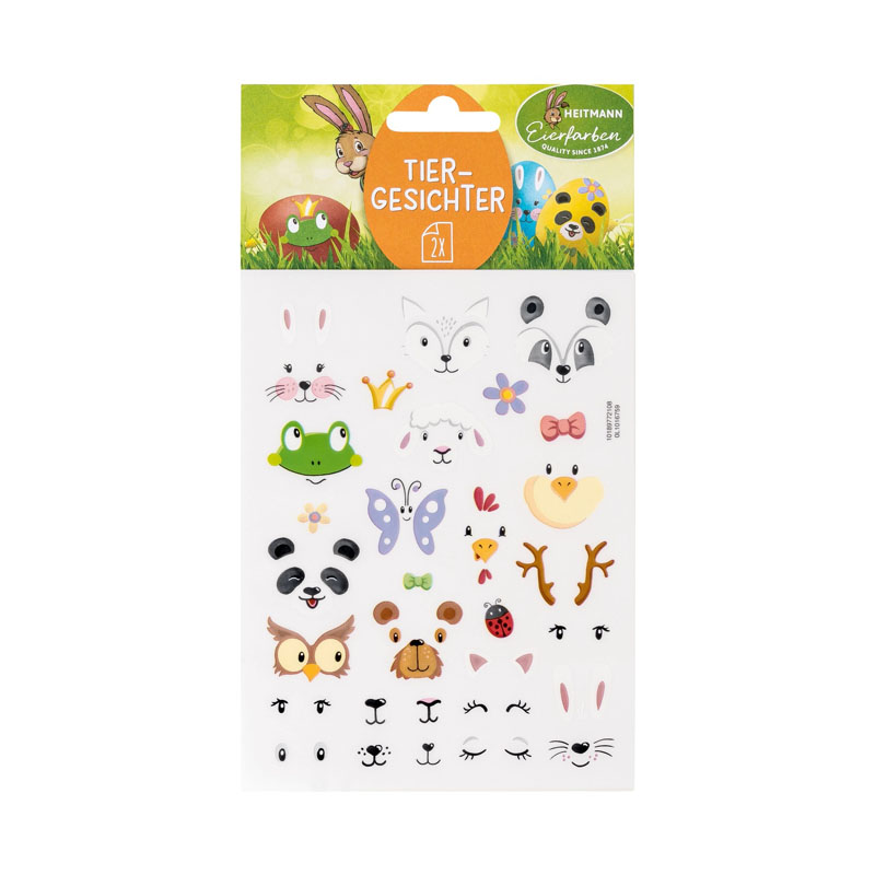Heitmann Easter Stickers with Animal Faces 2 Sheets, Assorted Colours