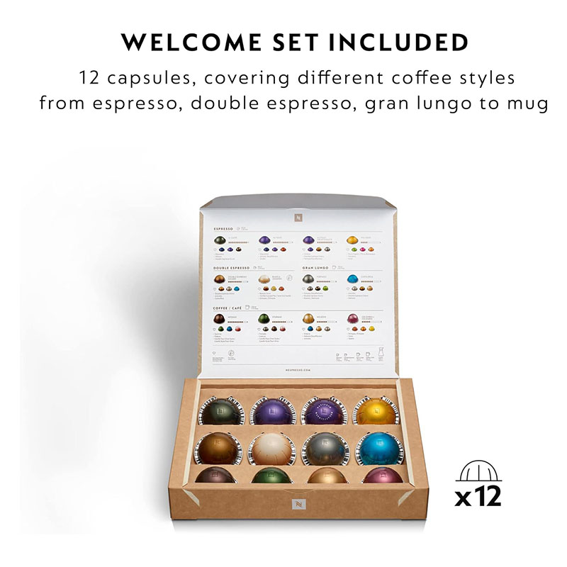 Versatile Nespresso coffee machine: 6 cup sizes (Ristretto, Espresso, Double Espresso, Gran Lungo, Mug/Coffee, XL Coffees & Cold Experiences)